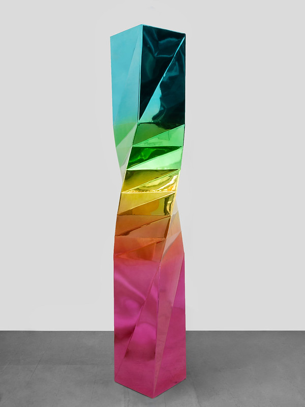 The artist, in his constant evolution in sculpture and who has made stainless steel his hallmark, presents this totem in stainless steel with translucent mineral pigment.
