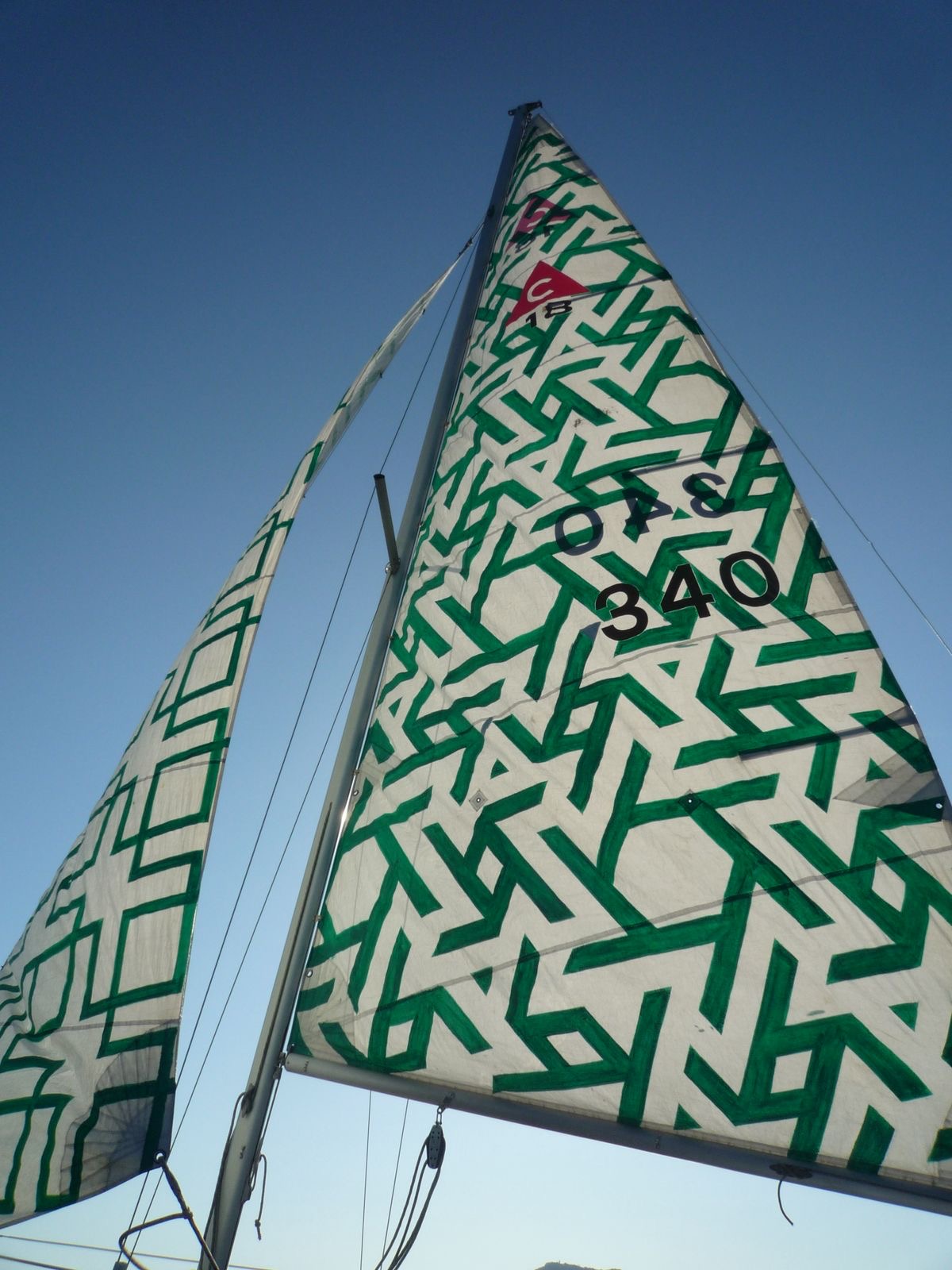 In this work, Aldo hand-painted the sails of his sailboat with a pattern inspired by Islamic geometry, transforming the vessel into a navigable sculpture. The project draws on the reference of Buddhist prayer flags—textiles inscribed with prayers that, when moved by the wind, disperse their message into space.